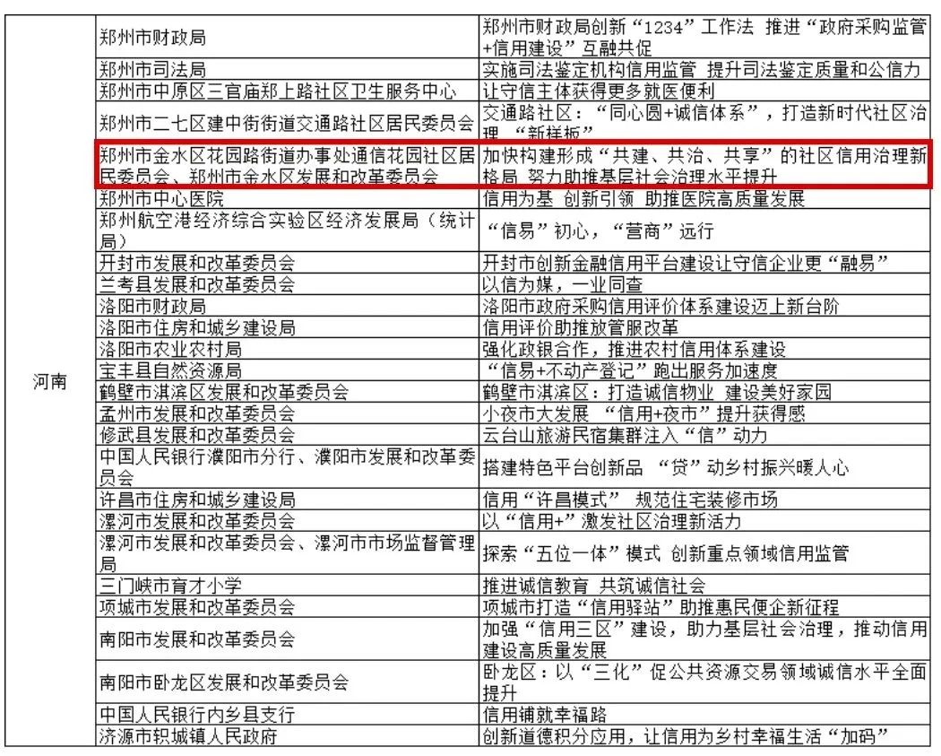 11月14日上午,第五届中国城市信用建设高峰论坛在郑州隆重开幕。大会重磅发布了180个“新华信用杯”全国信用优秀案例,金水区发改委和花园路街道报送的“加快构建形成‘共建、共治、共享’的社区信用治理新格局 努力助推基层社会治理水平提升”成功入选。