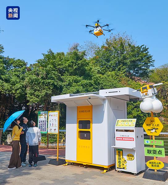 2025年1月20日,深圳,世界之窗景区,旅客体验无人机送外卖服务。