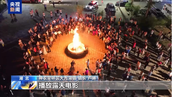 神农架林区大九湖镇镇长 卢琳:为了进一步丰富旅客体验感,我们专门聘请了街头歌手,举办篝火晚会,播放露天电影。通过带动夜间经济,让游客能够留下来、住下来。